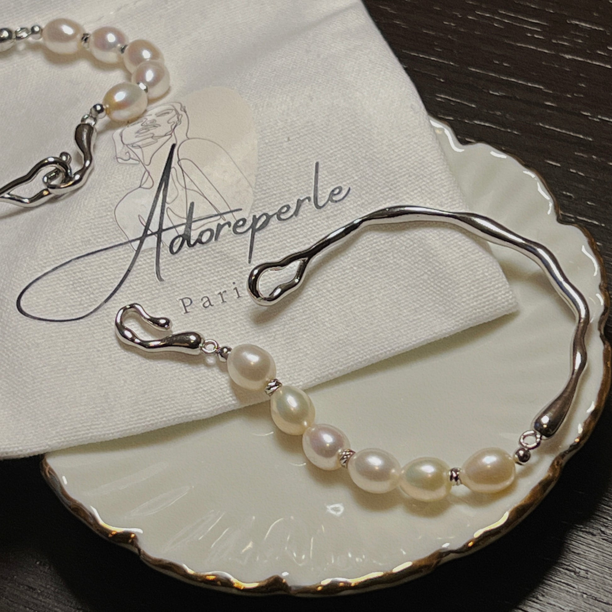 Unique design with natural baroque pearls of 3-10mm and accessory in white gold filled 18K, sterling silver material. weight 2.5g, size adjustable.