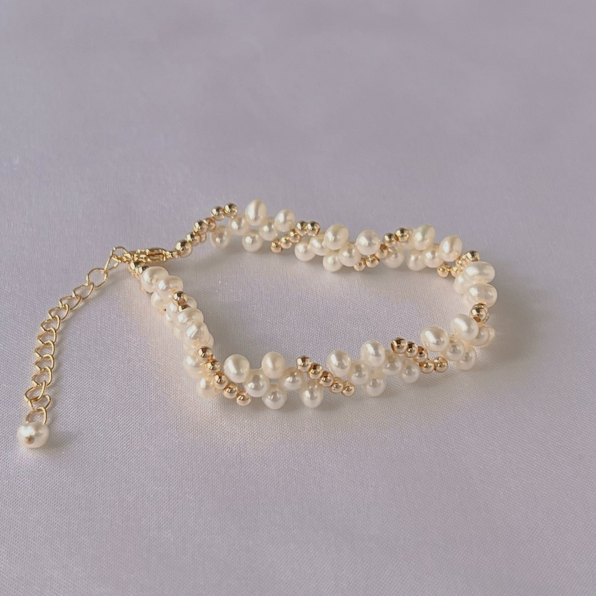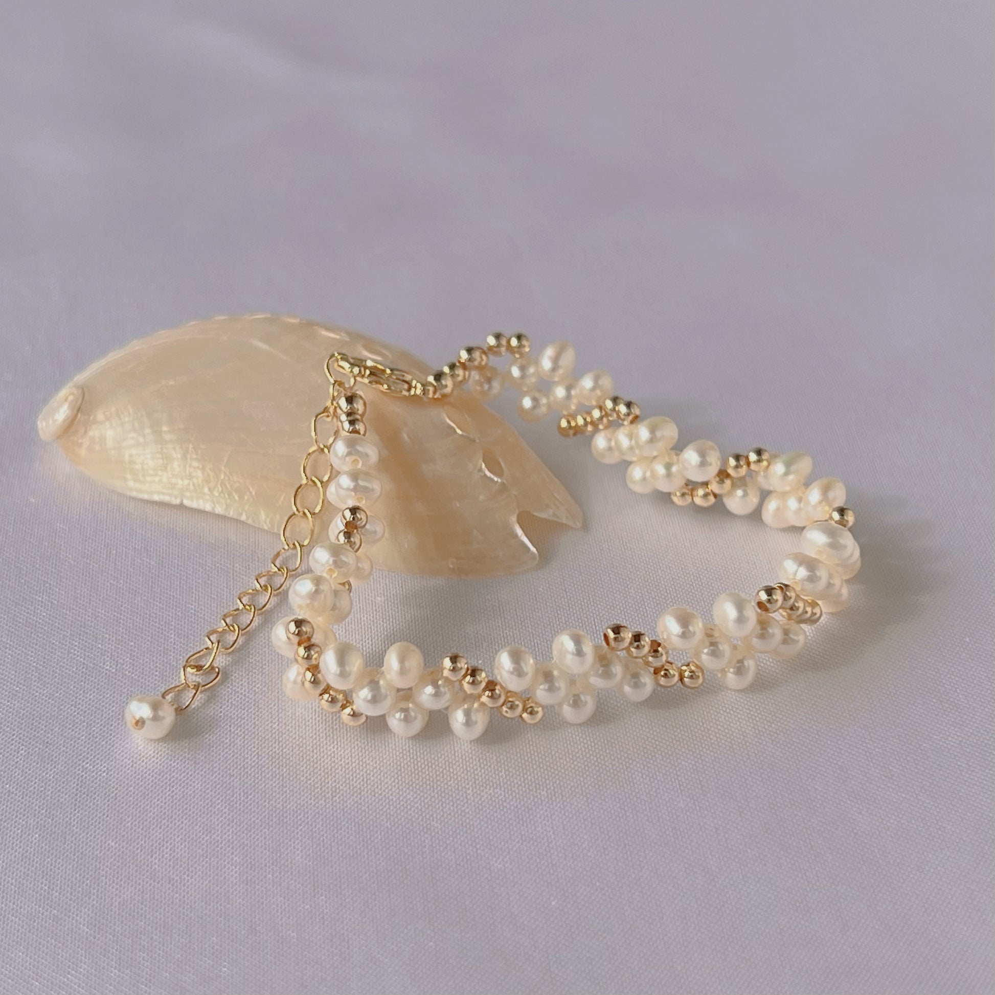 Unique design with natural pearls of 3-4mm and small gold-plated pearls, length 16cm with 5cm extension chain, weight 6g