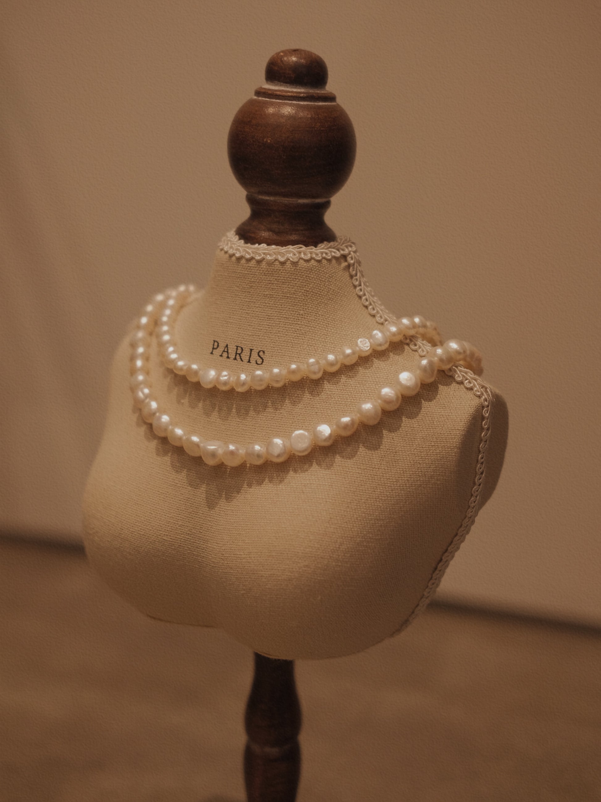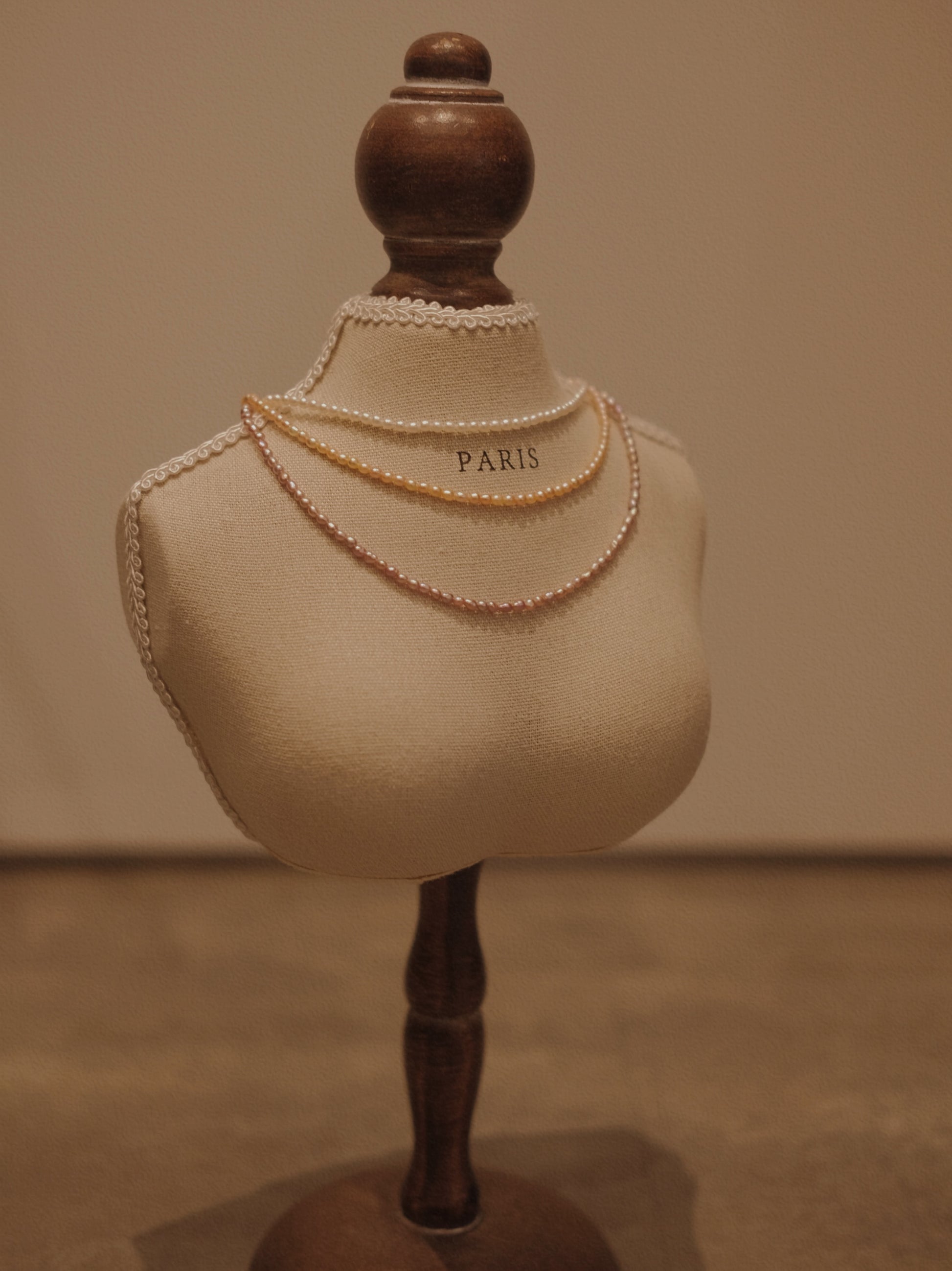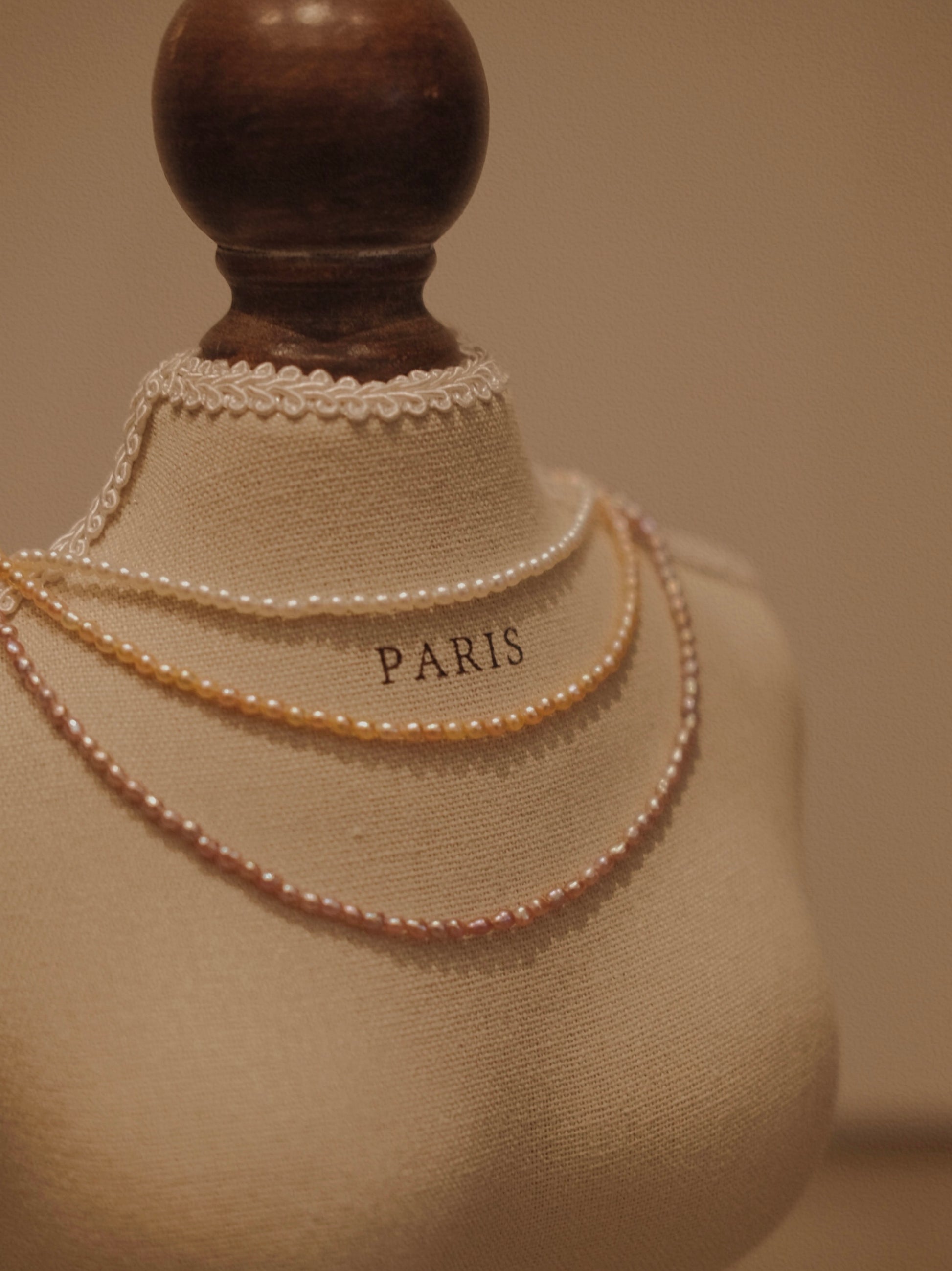 Unique design with natural pearls in different colors of 2mm-10mm, necklace length 33cm with 5cm extension chain in gold filled 14K, weight 10g-18g. You can wear the necklace with or without our cute pendants from Adore Charms Collection in gold plated 14K, which are all removable.