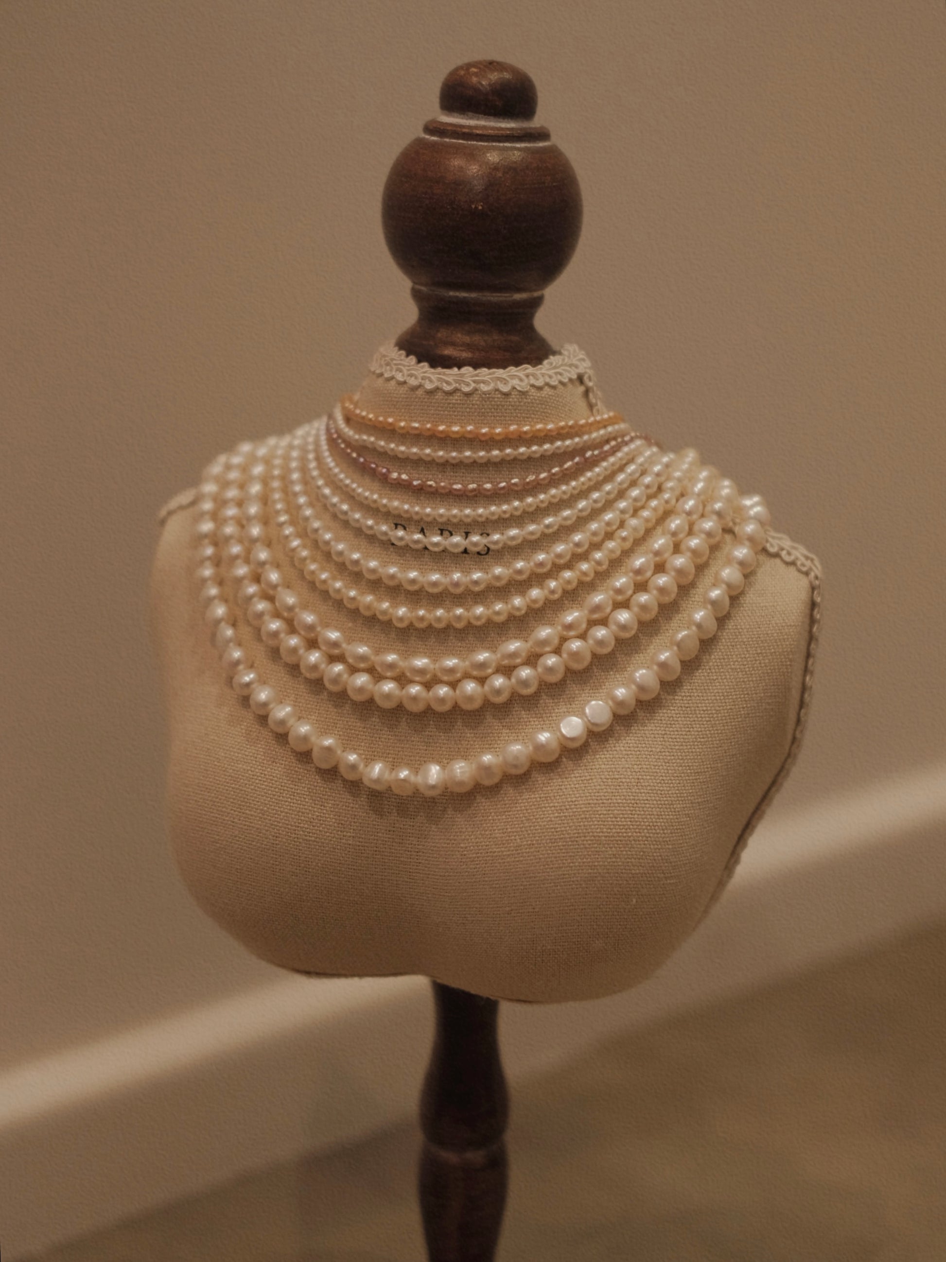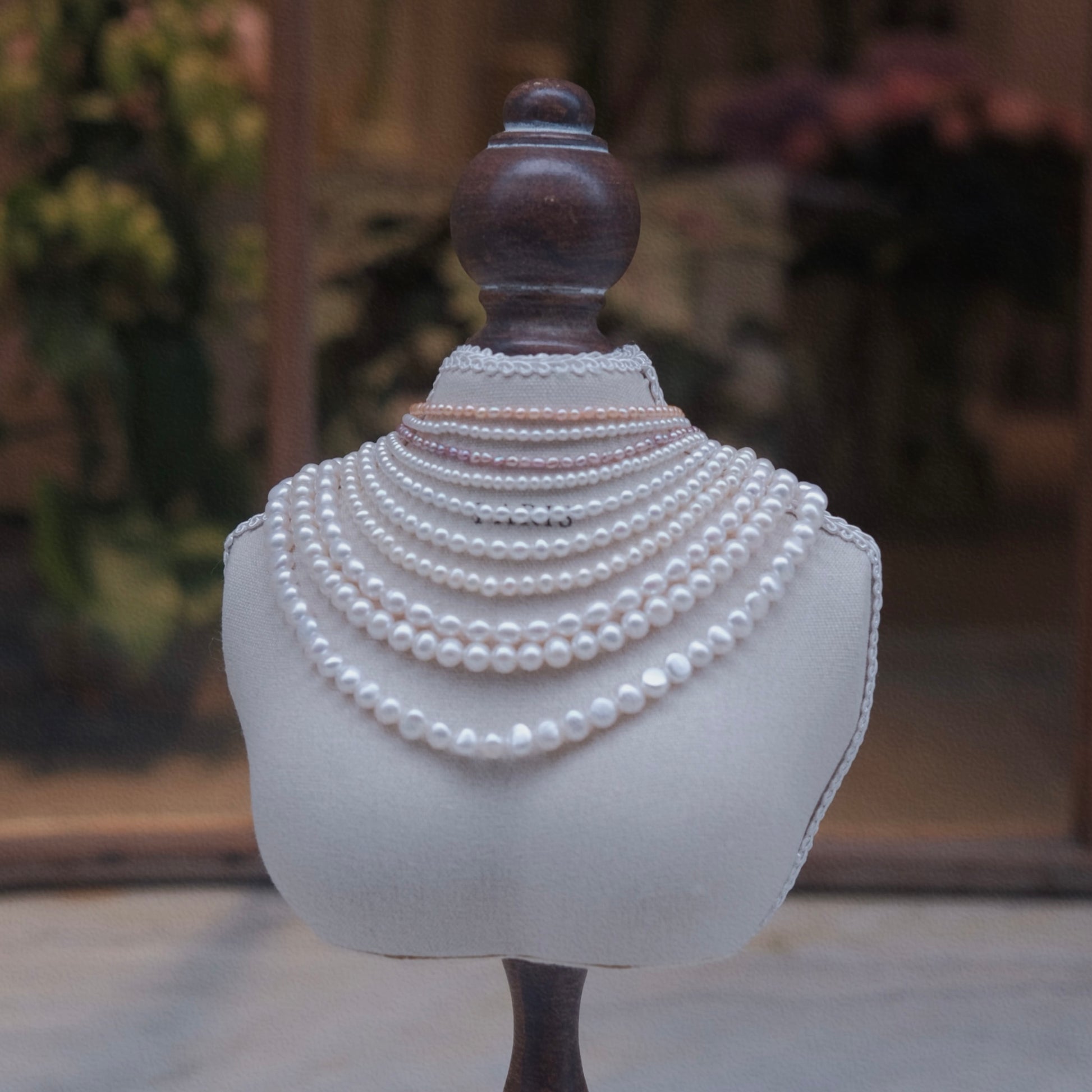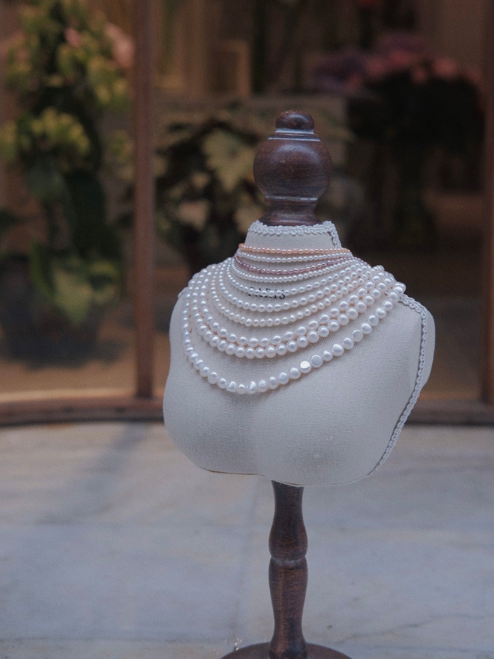 Unique design with natural pearls in different colors of 2mm-10mm, necklace length 33cm with 5cm extension chain in gold filled 14K, weight 10g-18g. You can wear the necklace with or without our cute pendants from Adore Charms Collection in gold plated 14K, which are all removable.