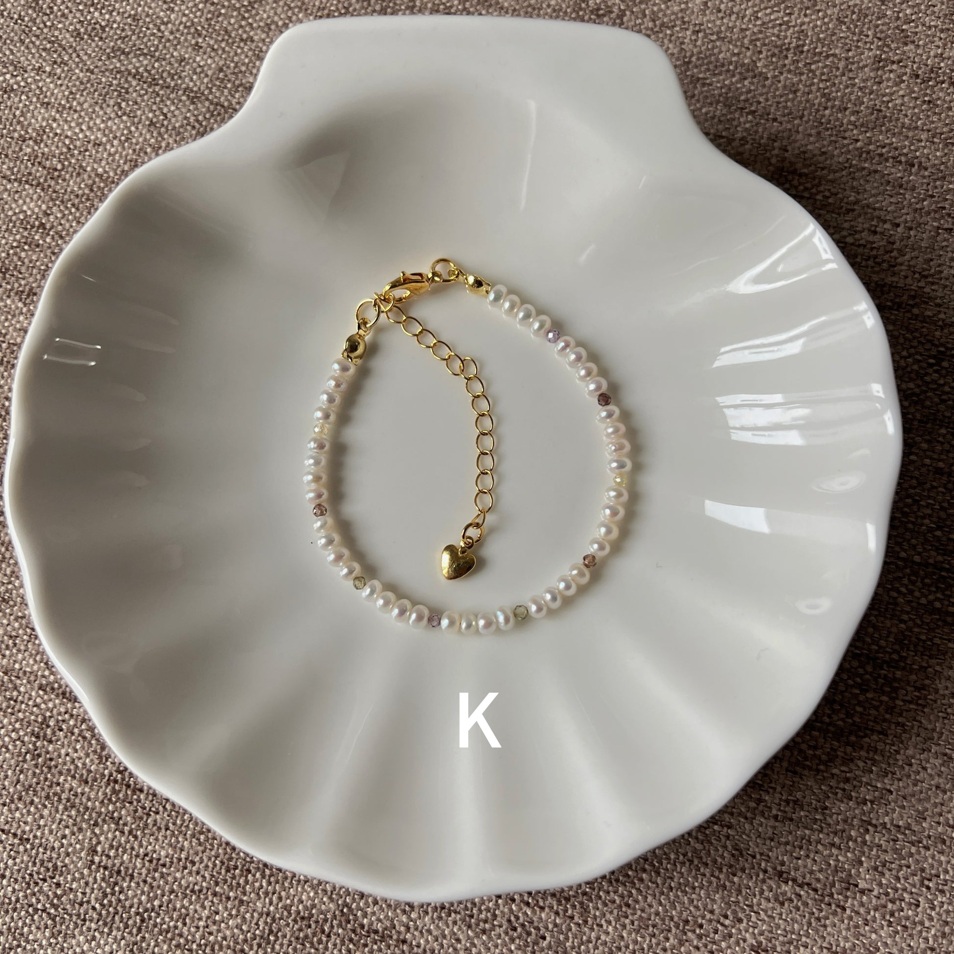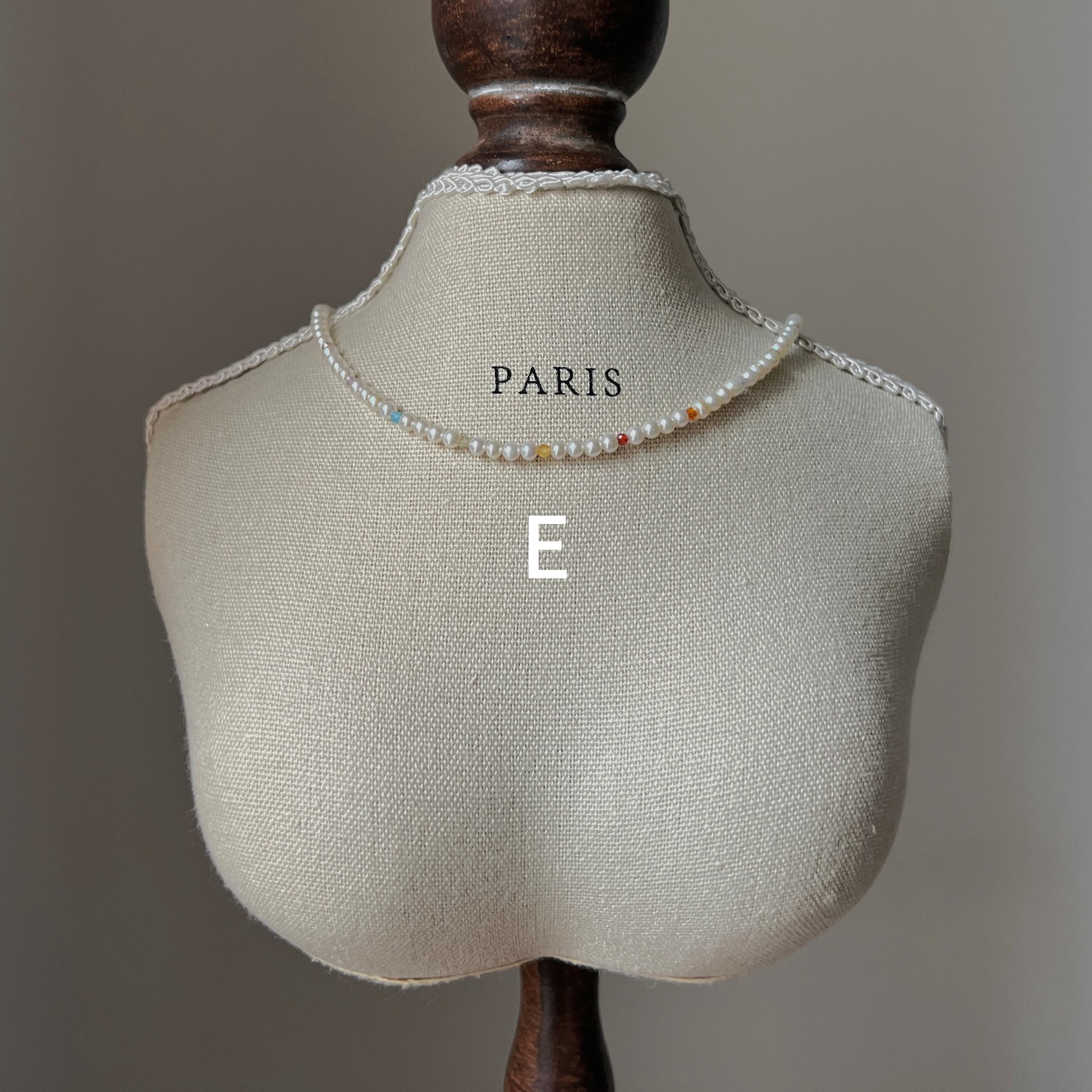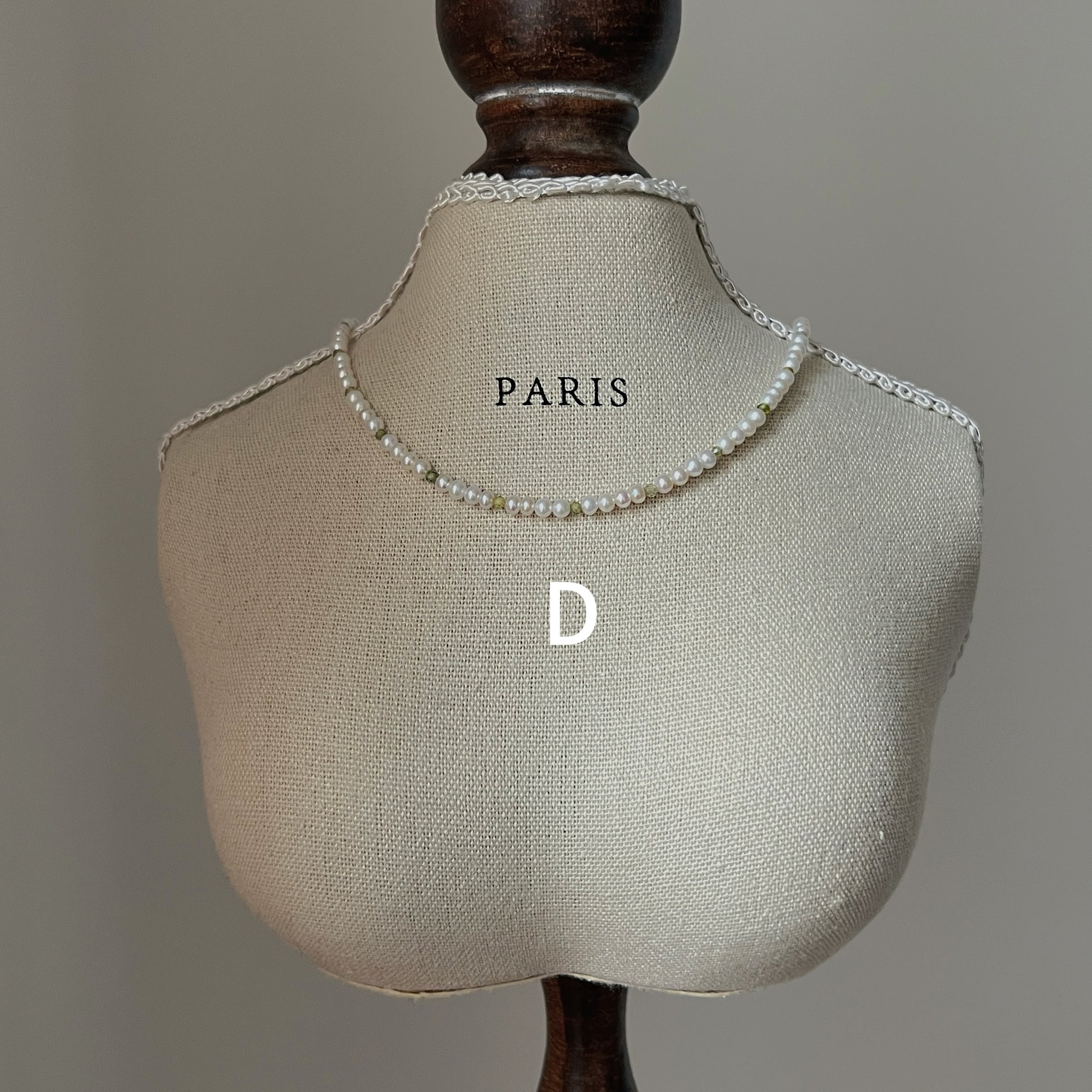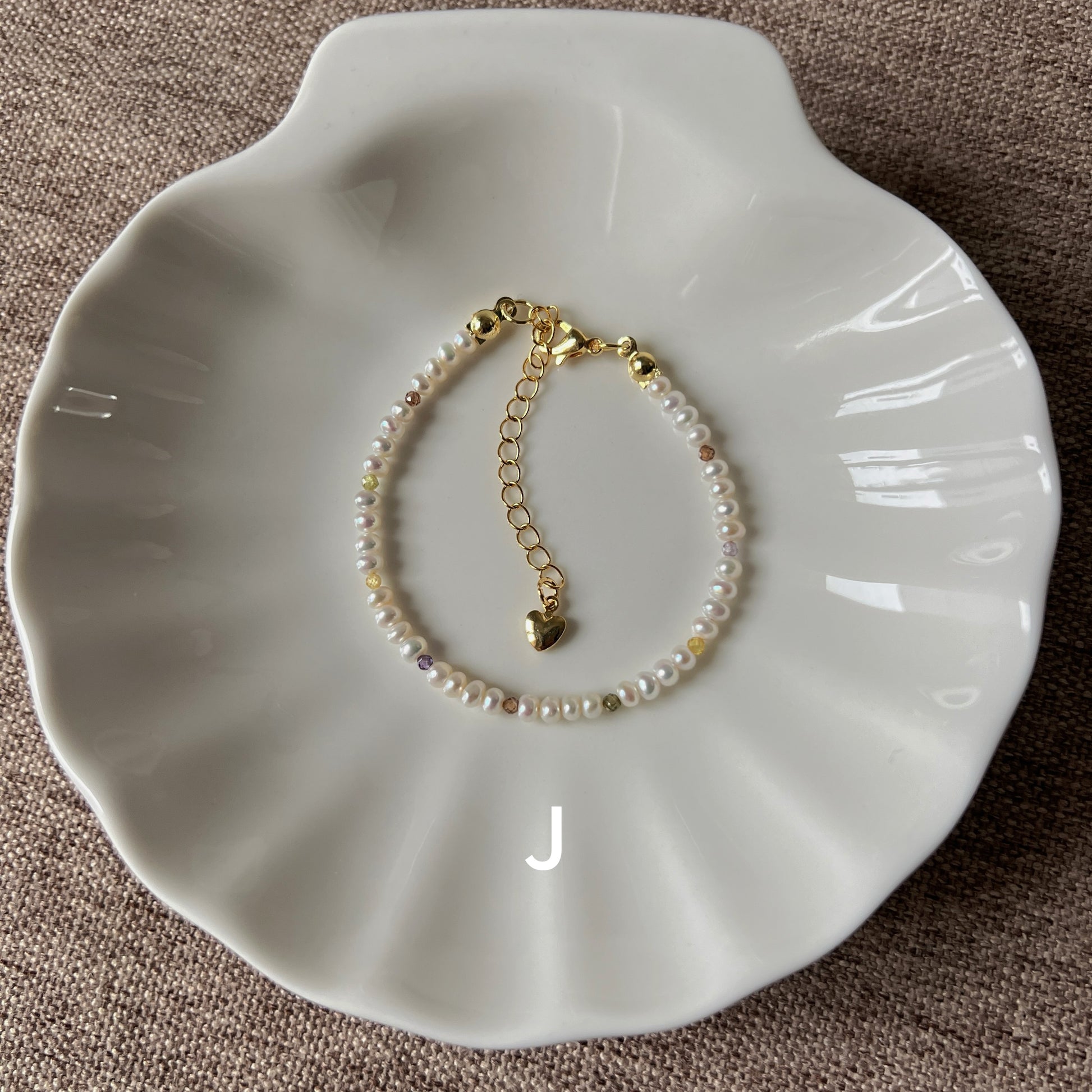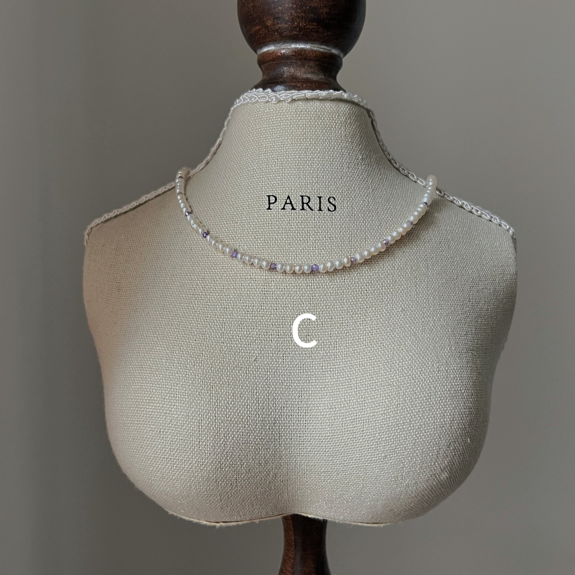 A unique collection inspired by Monet's garden, with necklaces and bracelets made from a combination of 3mm natural near-round freshwater pearls and colored zircons. The necklace is 33 cm long plus 5 cm extension chain and the bracelet is 15 cm long plus 5 cm extension chain.
