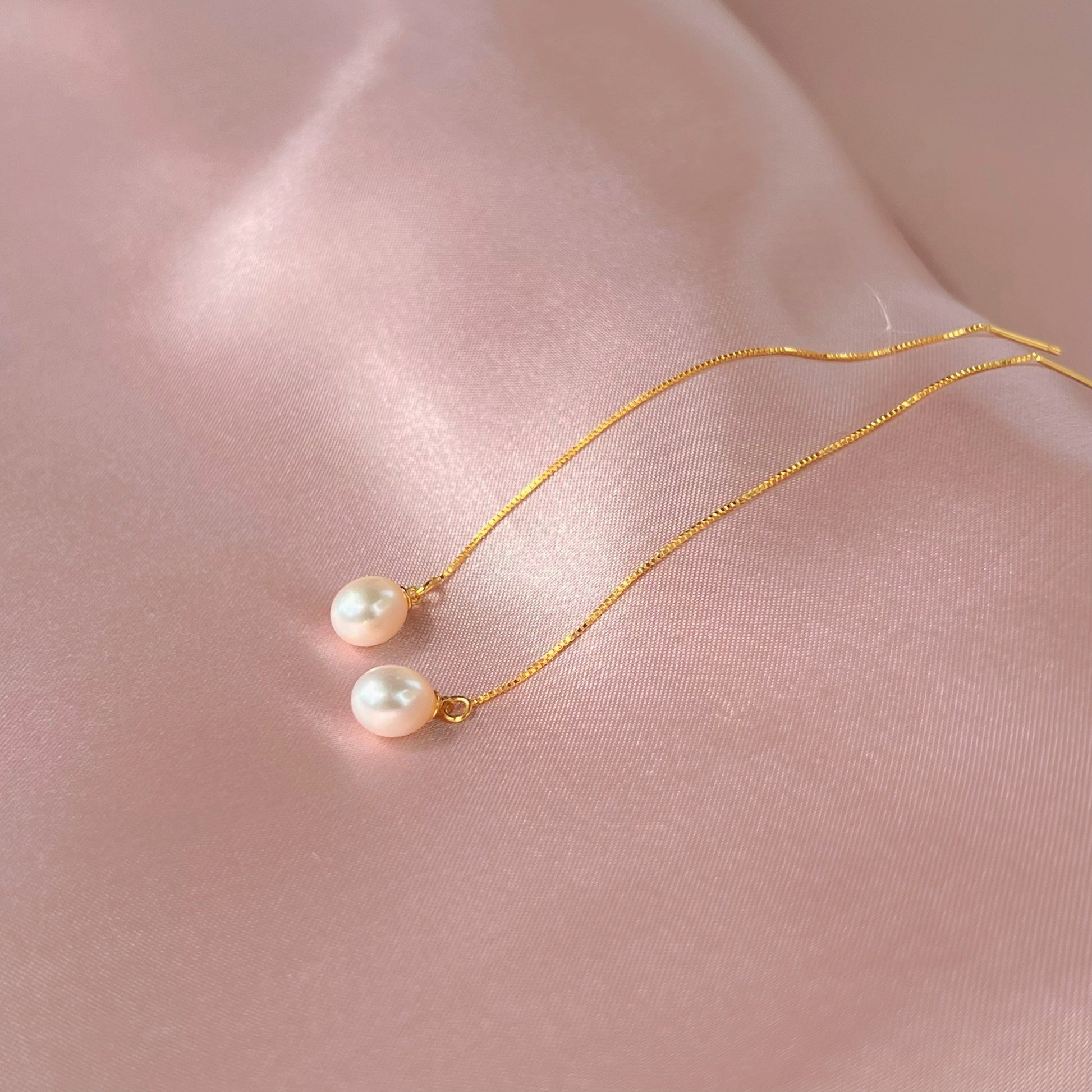 Unique tassel design with natural water drop pearl of 7mm, 925 silver pin, length 9.5cm, individual weight 1g