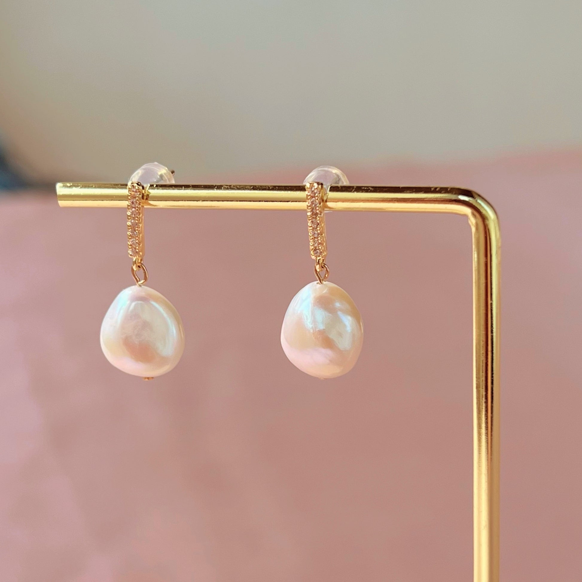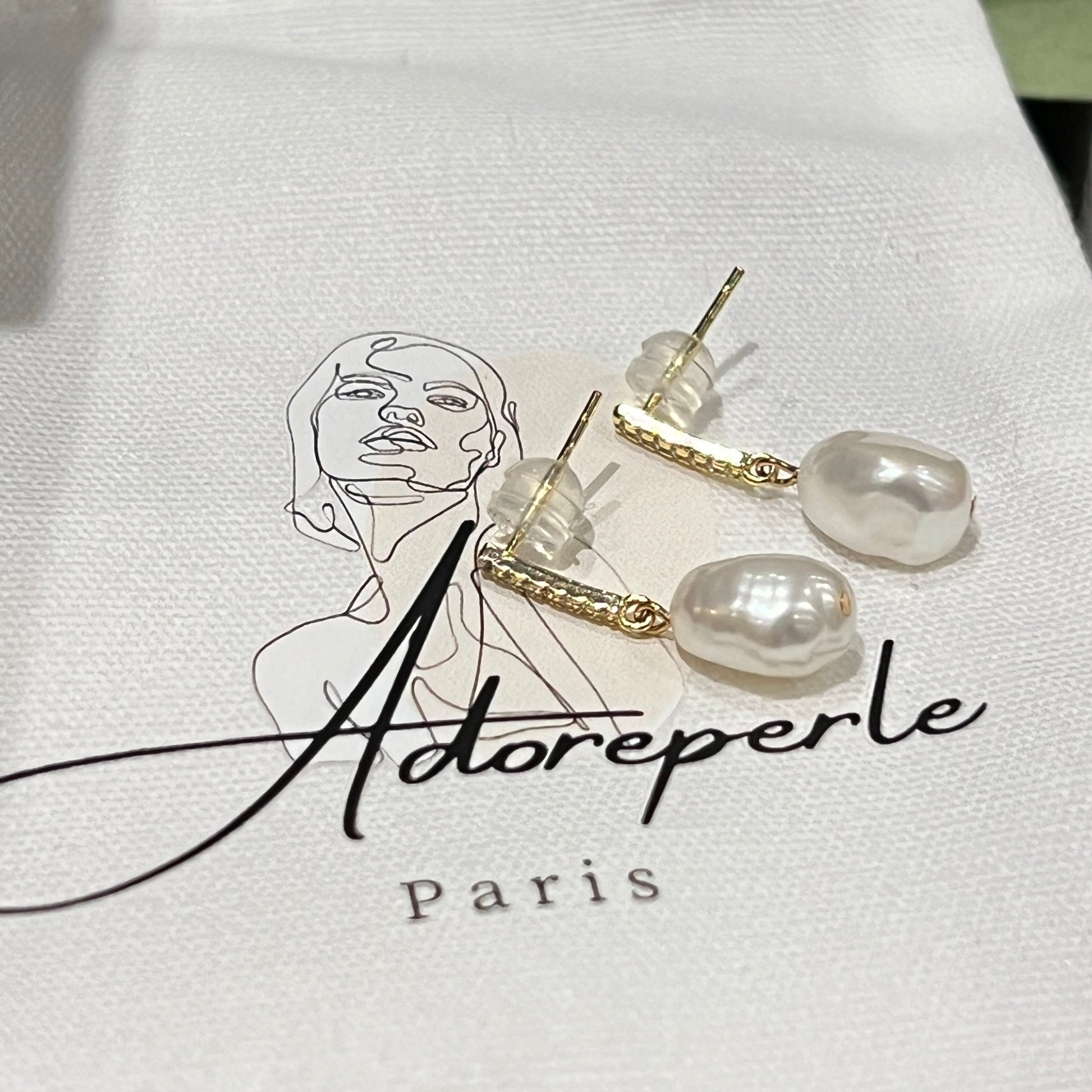 Unique design with water drop baroque pearls of 9-10mm and gold plated with artificial stones, 925 silver pin, individual weight 1.5g.