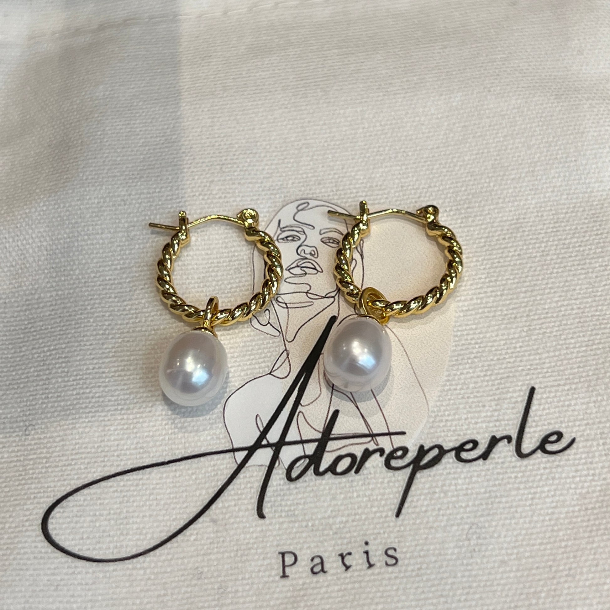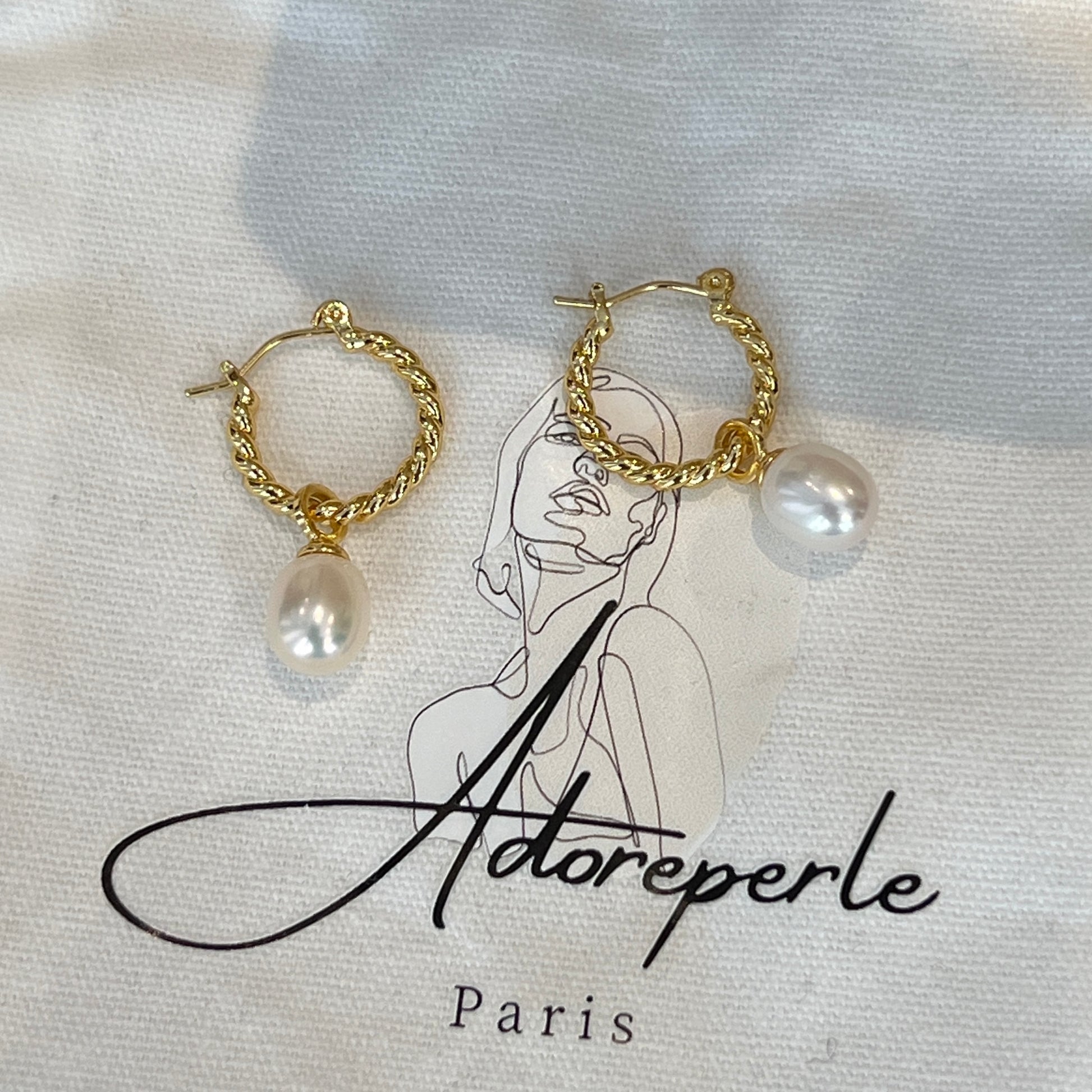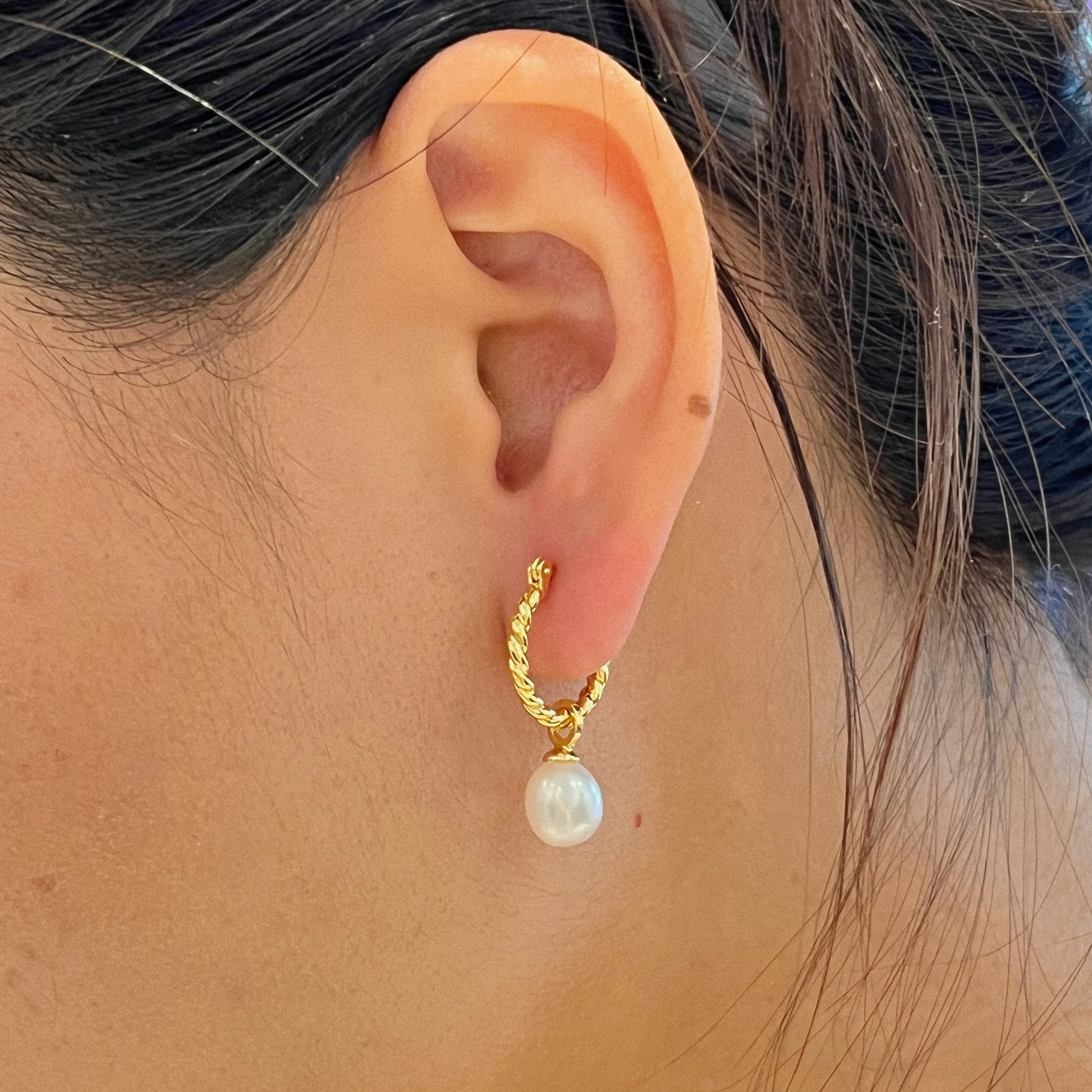 Unique two-piece twist design with 7-8mm natural pearls and 14K gold-filled earrings.